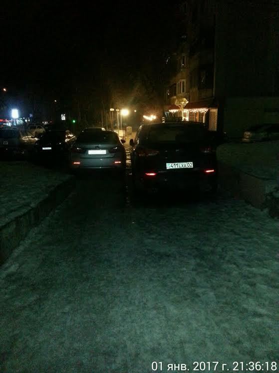 Аналогичное правонарушение было зафиксировано очевидцами в Астане. Жители ЖК "Жигер-2" по улице Кудайбердыулы пожаловались на владельцев авто, припарковавших свои машины прямо на тротуаре.