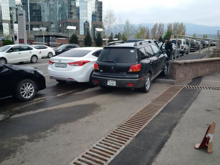 Столичные водители тоже "радуют" своим "мастерством". Близ Конгресс-холла выезды с парковки заставлены другими авто.