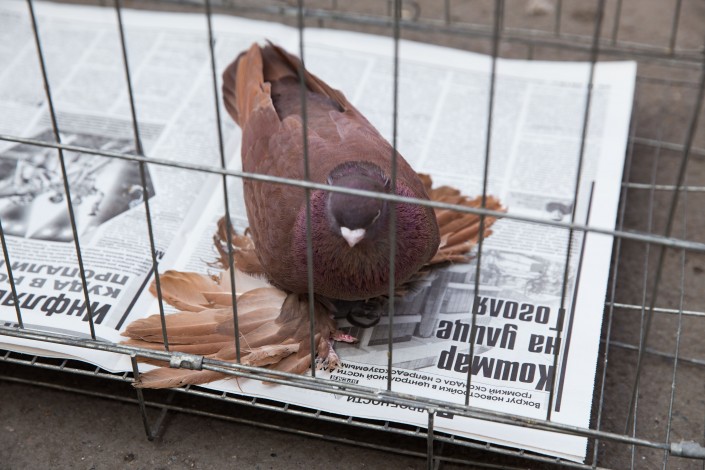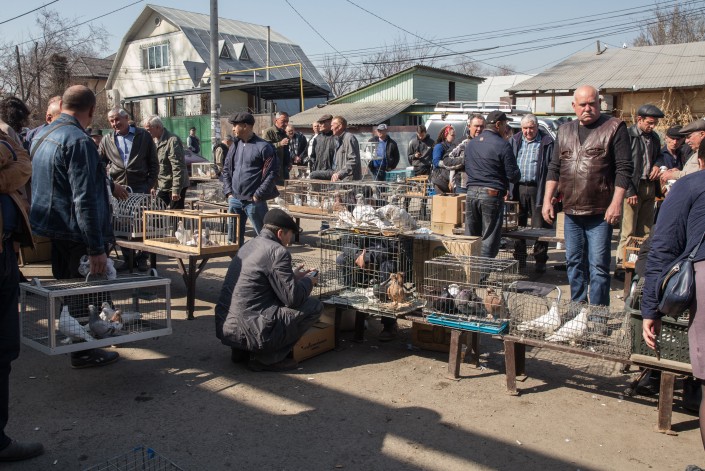 На углу улиц Менделеева и Погодина возле Верненского рынка в Малой станице расположился знаменитый Голубиный рынок. Он примечателен тем, что с 1860-х годов каждое воскресенье без исключения здесь продают пернатых и прочую мелкую живность. Особь на верхнем фото - бухарский голубь мужского пола, за него просят 25 000 тенге. Есть птицы, стоимость которых доходит до 75 000 тенге.