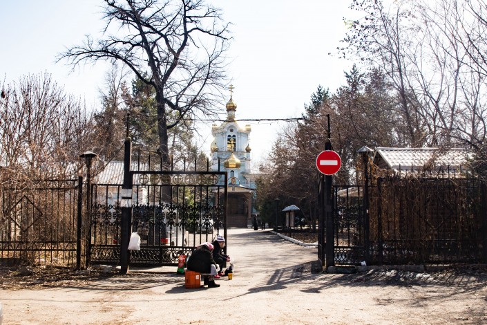 Следующий пункт назначения - Казанский собор. Примечательно, что здание храма было выстроено в 1858 году на Жангельдина - Ашимбаевой как Софийская церковь. Но в 1871 году оно было разобрано и возведено заново в Малой станице. В 1944-1946 годах это была единственная действующая церковь в Алма-Ате. Получается, что это самая старинная церковь города.