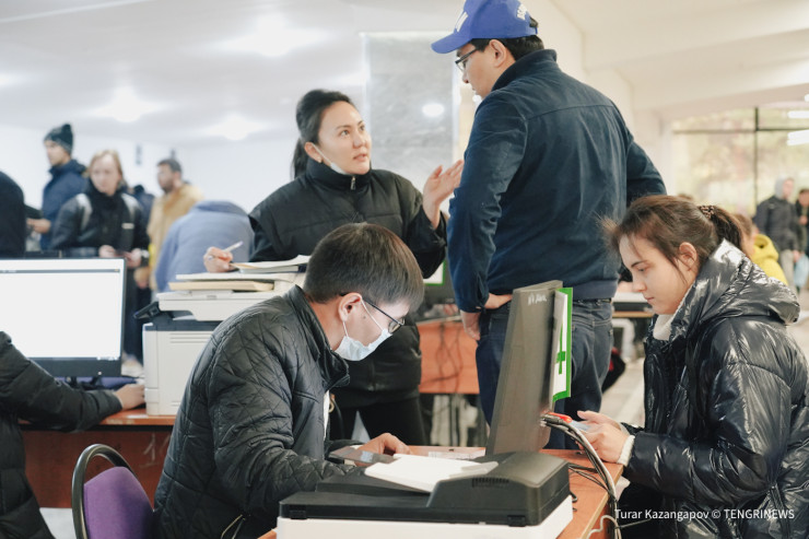 "После четырех уже новых людей не будем принимать сегодня. Сейчас ожидают в очереди полторы тысячи человек. Их всем мы точно не сможем принять до шести (официальное время работы ЦОНов в столице с 09:00 до 18:00. - Прим.), скорее всего, это затянется до семи-восьми вечера. Закрыли очередь сейчас и будем работать до последнего ожидающего", - сказал Мади Саданов.