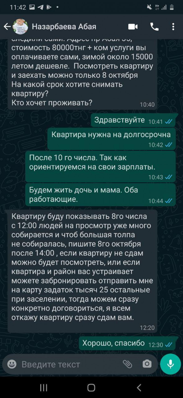 "Сейчас муж на работе, а вечером мы вам покажем квартиру, давайте вы мне скинете задаток хоть какой-то, чтобы я уже понимала, что вы девушка серьезная, а то, знаете, желающих очень много".