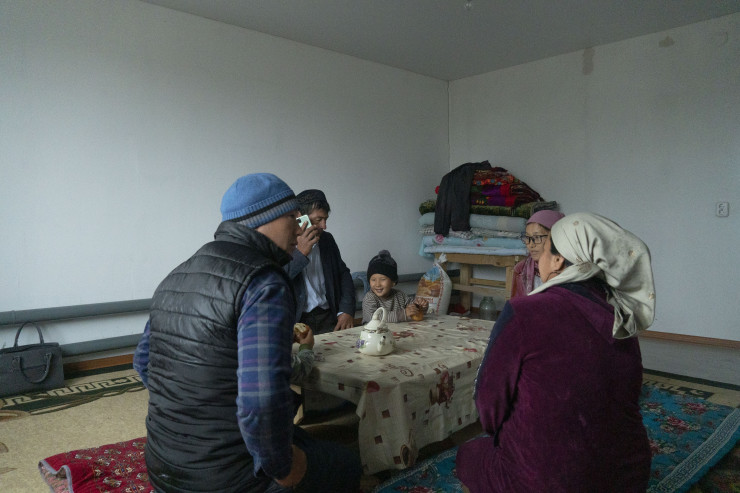 "Мой сын и брат приехали сюда два месяца назад. Им обещали, что все доделают в течение двух недель, сказали: "Не беспокойтесь, переселяйтесь". Мы верили, два месяца прошло, нет света, нет воды, дорога тоже плохая", - говорит аксакал Балгабай Алимбеков.