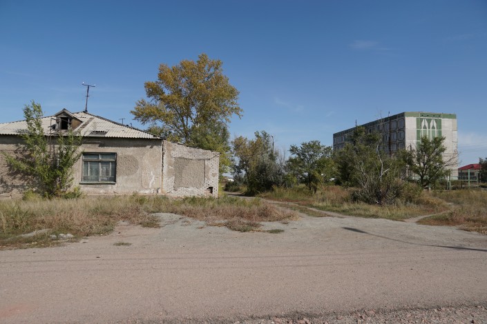 Прочитав, что дом № 6 (зеленую пятиэтажку) сносят, жильцы соседней одноэтажки под номером 7 поинтересовались у акима, а что же будет с их домом, который, по сути, остается один в степи.