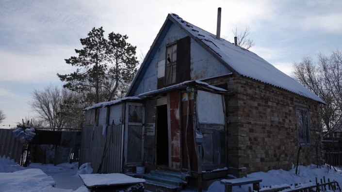 В доме очень холодно, на стенах видны трещины шириной в несколько сантиметров. В сильные морозы семья закрывает все комнаты и живет на кухне, чтобы экономить уголь.