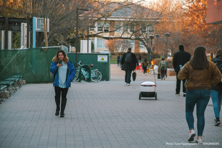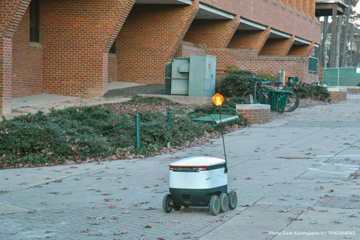"Ну и самое невероятное, что я когда-либо видел, по территории студенческого городка разъезжают роботы. Как мне рассказали, они развозят еду для студентов, которые по каким-то причинам не могут идти в столовую", - комментирует фотограф.