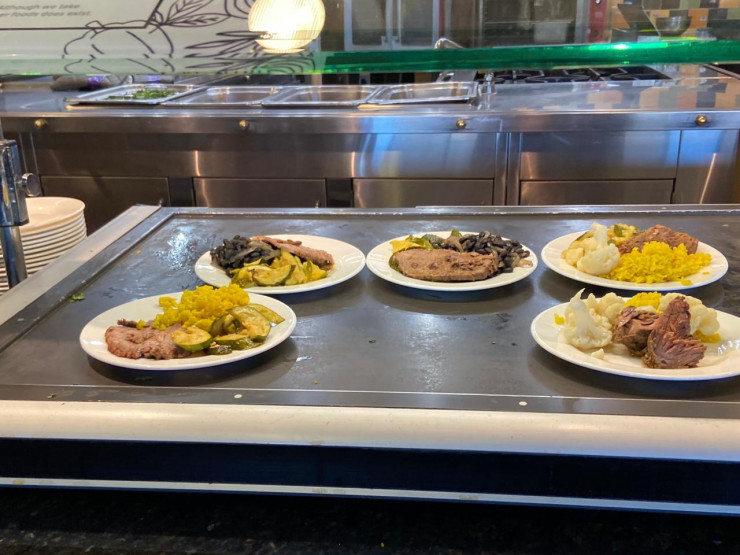 "Это, конечно, что-то... - вспоминает наш фотограф. -  Язык не поворачивается назвать это столовой. Я бы сравнил это с едой из пятизвездочного отеля. Большой выбор готовых блюд, но можно еще попросить сделать яичницу, а еще есть бургеры, мороженое, смузи. Есть даже отдельное меню для вегетарианцев".