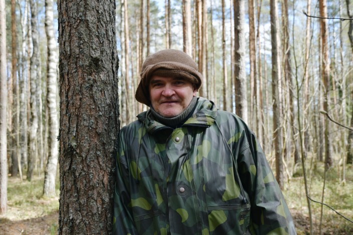 Гуляя по лесу, мы с фотографом заметили примечательную картину - поисковик раскуривает трубку. Не сфотографировать такой образ было просто невозможно. Хотели сделать это тайно, но нас быстро разоблачили. "Прежде чем фотографировать, нужно спрашивать разрешения, молодые люди", - сказал герой фотографии.