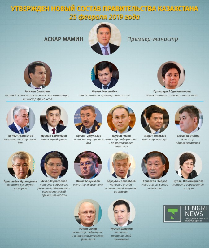 В Казахстане обновился состав правительства. Главой кабмина назначен Аскар Мамин, занимавший до этого пост вице-премьера страны. Все назначения произошли в один день. Tengrinews.kz решил подробней рассказать, какие изменения претерпел кабмин.