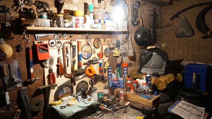 Этот сарайчик он обустроил для себя. Любит мастерить руками.