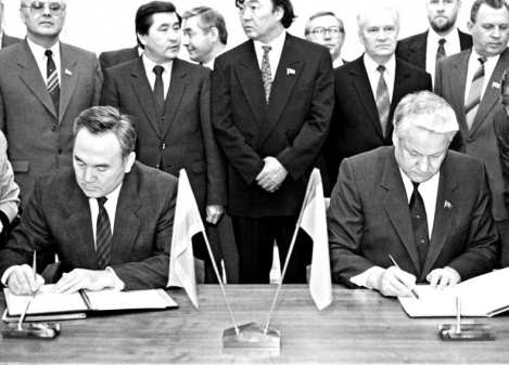 "Эти отношения (дружбы, добрососедства и союзничества) были заложены еще при первом президенте России Б.Н. Ельцине, к которому я отношусь с огромным уважением. Уверен, что Россия всегда будет помнить, что именно он заложил сегодняшний вектор развития, развернув страну от тоталитаризма к либеральной экономике и политике", - писал Назарбаев в статье "Дружба на века". "Российская газета" , 5 октября 2012 года.