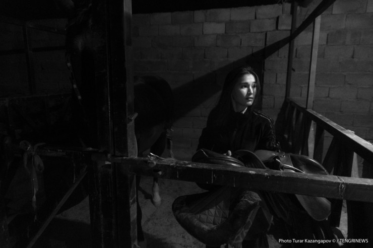 Зовут ее Балнур, фамилия Садык, ей 23 года. На первый взгляд это хрупкая девушка, но стоит ей сесть на лошадь, как она тут же превращается в грациозную и даже местами бесстрашную всадницу.