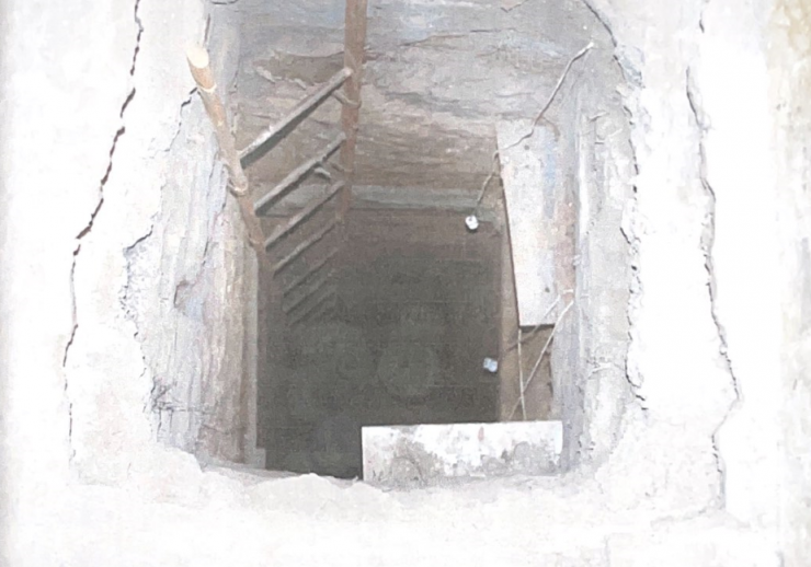 74-метровый туннель, который выкопал астанчанин в одиночку. На полу видны самодельные направляющие для тележки. Стены укреплены досками.