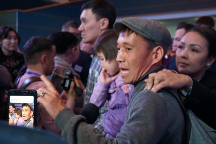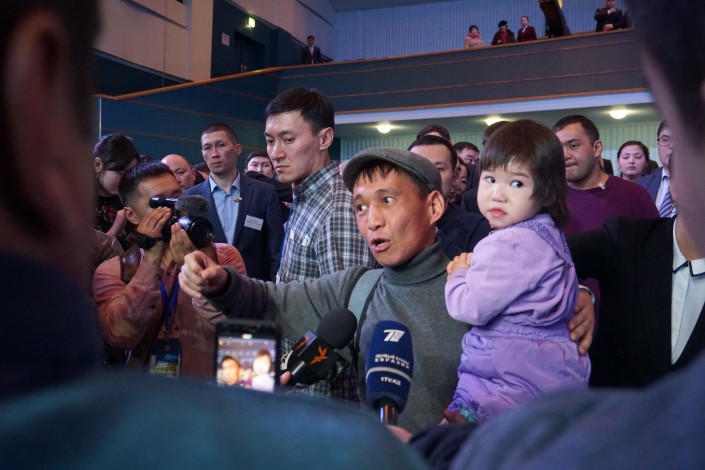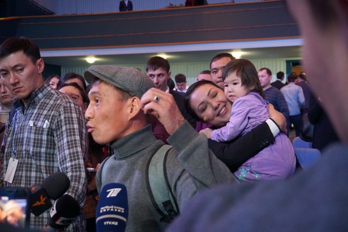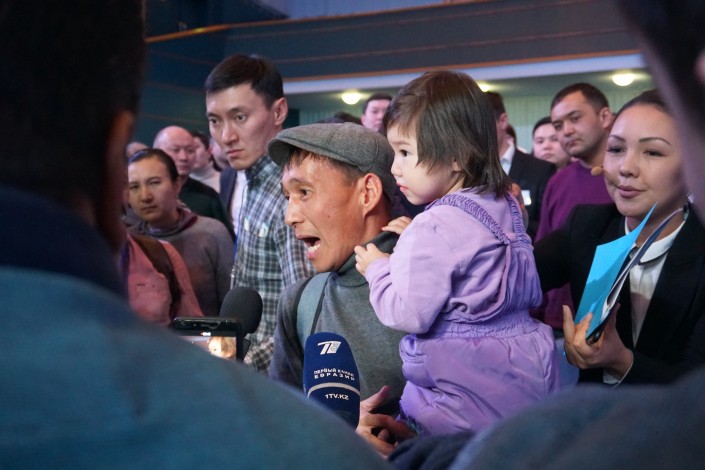 Толпа расступилась, и перед журналистами появился мужчина с ребенком на руках. Это был все тот же отец-одиночка Рысмахан со своей дочерью Инжу.