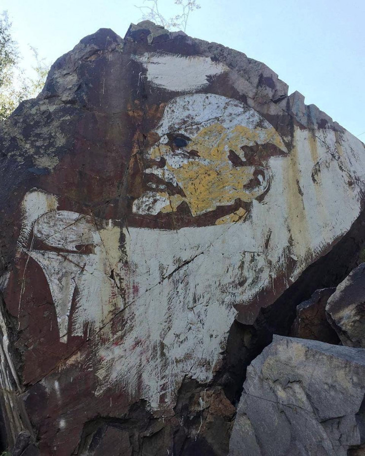 Вождя пролетариата можно встретить даже на природе, по дороге на озеро Иссык.