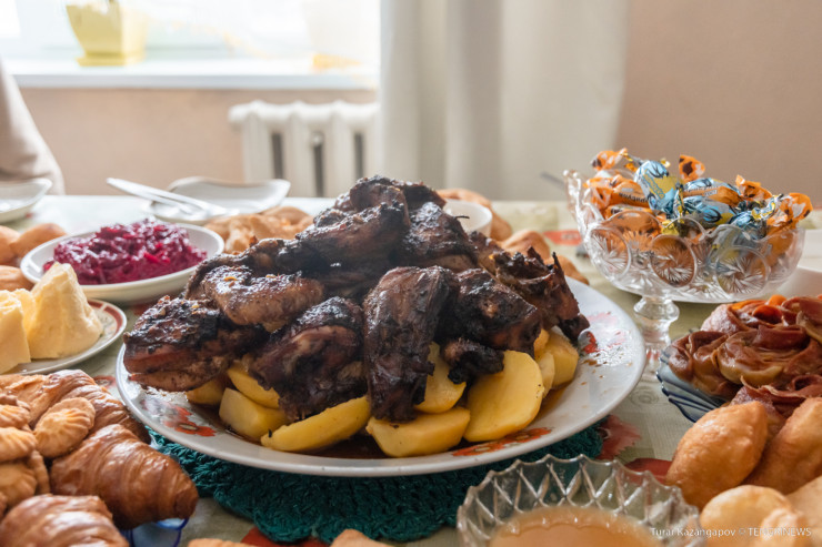 Пока мы беседовали, дочки и супруга Мурата накрыли на стол. Вся семья собирается за богатым дастарханом.