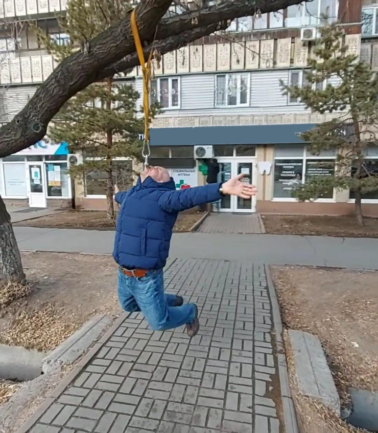В Казахстанской книге рекордов мои достижения зафиксированы уже два раза. В первый раз я провисел на веревке исключительно на одних зубах в течение 15 секунд.