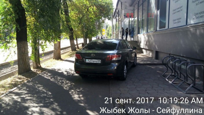 Парковка на тротуаре на пересечении улиц Айтеке би и Чокина