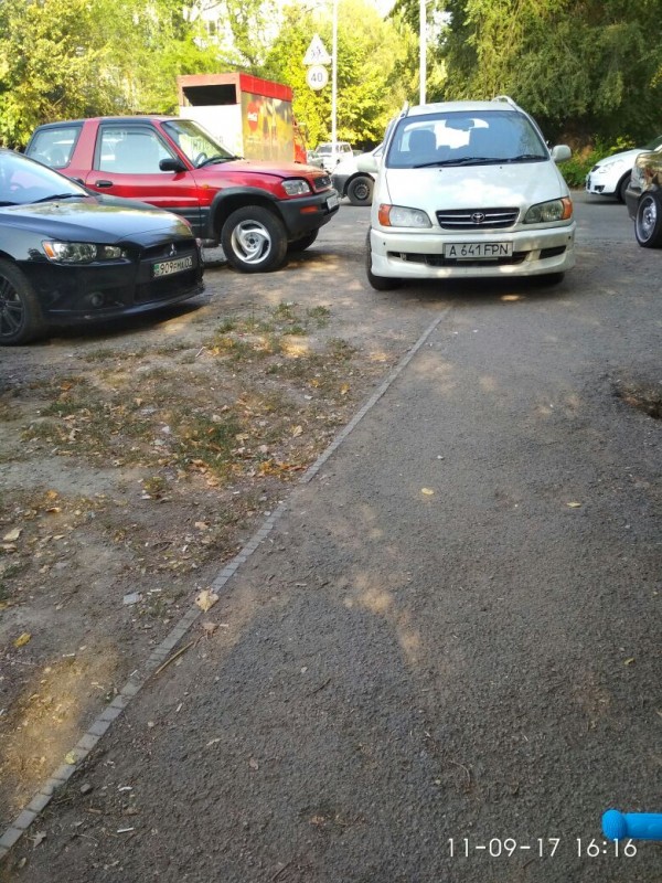 Парковка на газоне на проспекте Достык, выше улицы Хаджимукана.