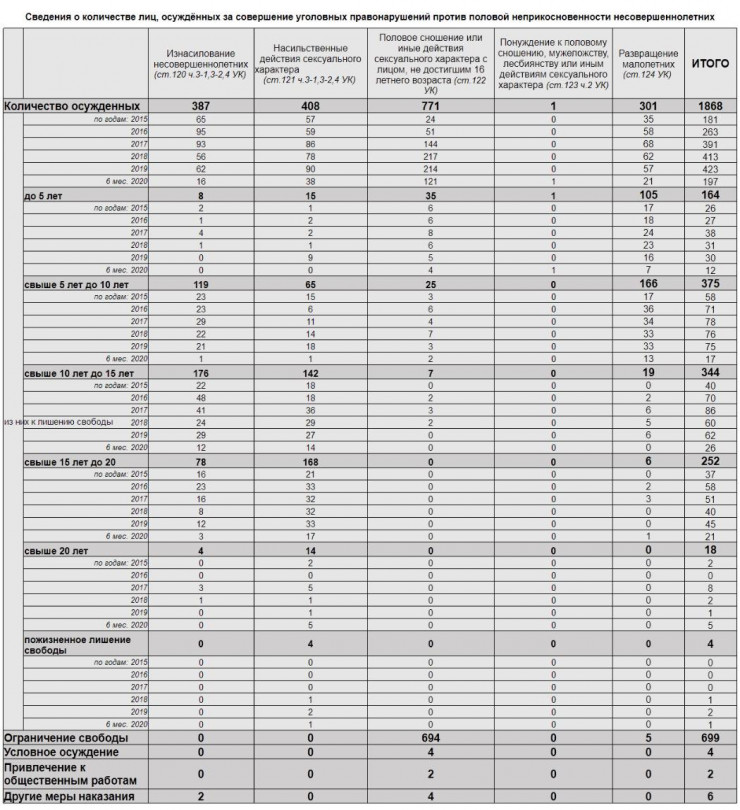 Согласно данным Комитета по правовой статистике РК, в Казахстане с 2015 года по июнь 2020 года было осуждено 1868 человек по следующим статьям: