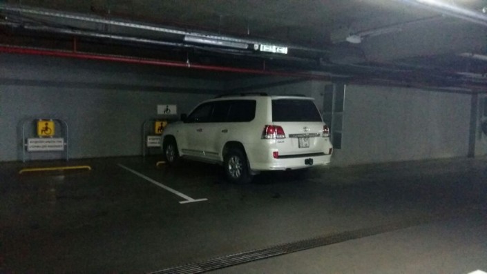 А здесь зафиксирована парковка внедорожников на местах для инвалидов в подземных паркингах торговых центров в Алматы. Автор фото отмечает, что на автомобилях не было знаков "инвалид за рулем".