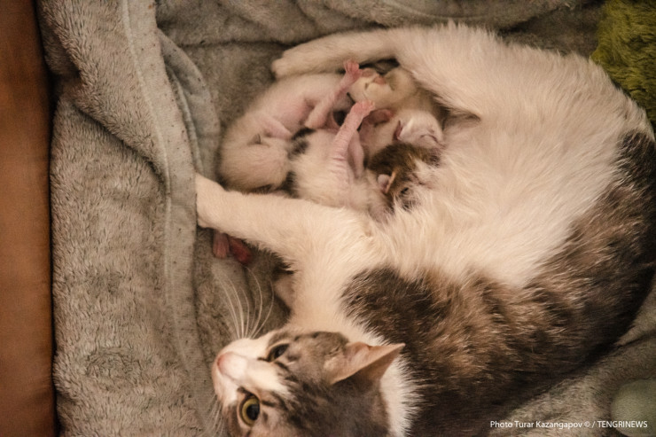 Семеро во времянке, не считая кошки с котятами. Мать-героиня по имени Алма