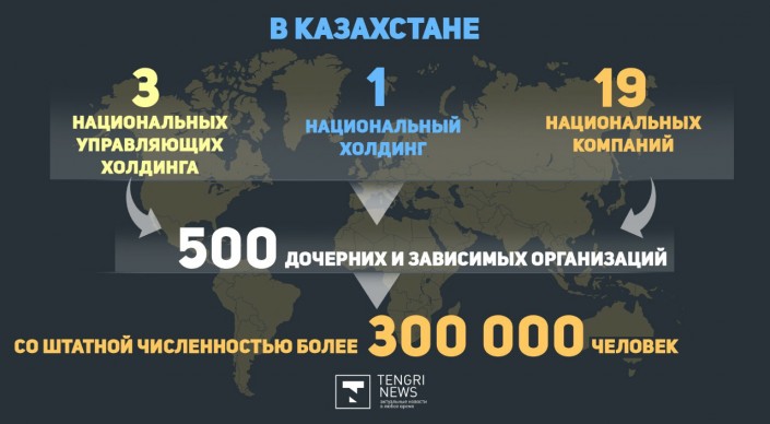 По данным Миннацэкономики, по состоянию на 1 мая 2019 года в структуре национальных компаний и холдингов имеется более 500 дочерних и зависимых организаций, где трудится более 300 тысяч сотрудников.