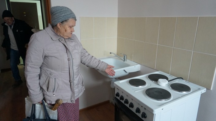 Она одна из тех, кто решил заехать в новый дом сразу, как только получил ключи. В "Автоматике" она жила с 1970 года. "Я довольна, нормально, хорошо, мне понравилось. Здесь, конечно, лучше, потому что все-таки там ни отопления не было, ничего не было. Знаете, когда начала наша активистка ходить за нашу пятиэтажку в "Автоматике", ей предоставили бумагу, что у нас есть центральное отопление и газ централизованный. Но ни отопления, ни газа уже и в помине не было, люди баллоны на пятый этаж носили", - говорит женщина.
