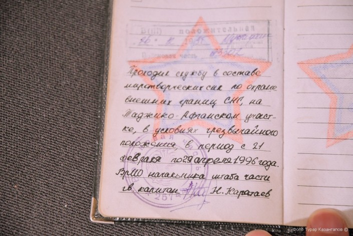 Некоторые комментарии к его истории, распространенной в социальных сетях, Сергея немного расстроили. "Некоторые ставили под сомнение тот факт, что я участвовал в боевых действиях на таджикско-афганской границе и что мои награды настоящие", - говорит Сергей и демонстрирует нам все необходимые документы, свидетельствующие о том, что награды его реальные.