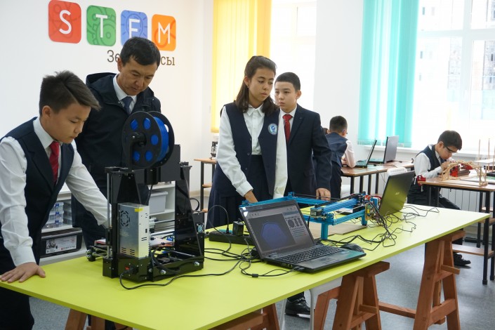 В соседнем кабинете ученики тоже не сидят без дела - кто-то показывает, как работает прибор по измерению погоды, кто-то создает картину в честь 20-летия Астаны. Все они вместе с учителями ждут визита Президента Казахстана. Сам Нурсултан Назарбаев в эти минуты выступает перед депутатами на открытии очередной сессии Парламента.