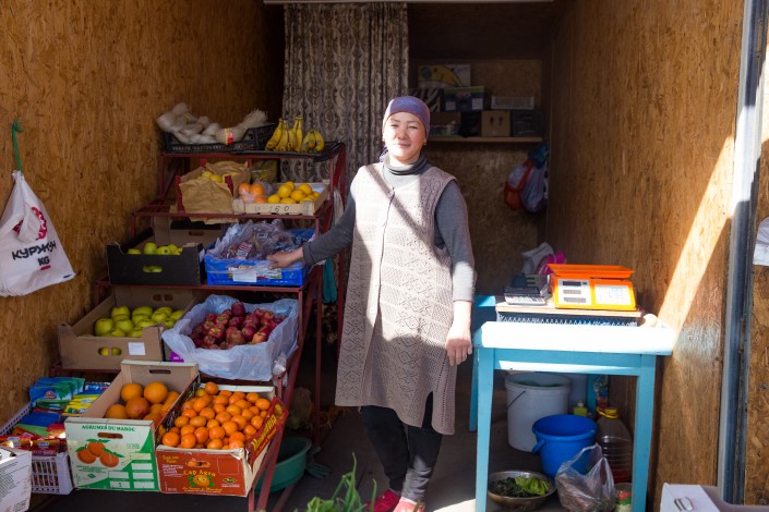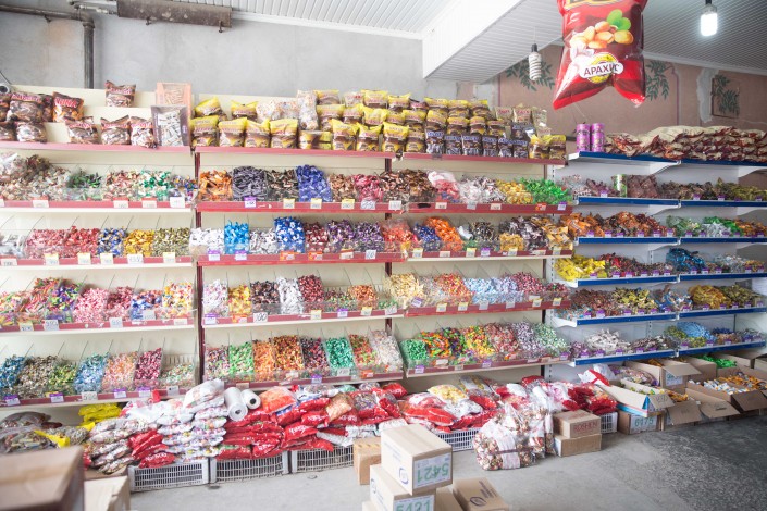 Мы едем на экскурсию по близлежащим селам. По пути снимаем все, что видим. Заходим в местные магазины - из дунганского здесь почти ничего нет. Разве только молотый красный перец - дунганской хозяйке килограммового куля хватит максимум на месяц. Еще находим халву нитками. Проверяем слова героя: сигарет и алкоголя на прилавках действительно нет. В магазине одежды на память покупаем лаконичные одноцветные женские головные платки, повязываемые по типу бандан. 1 000 тенге за штуку.