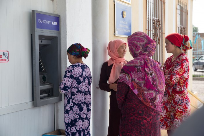 Аухатты, Сортобе и другие села идут почти встык. Лишь Масанчи находится чуть поодаль. Самое проходное место в Масанчи - перекресток со светофором. С одного угла - Дом культуры с библиотекой, где также находится музей села Масанчи. Снаружи здания - единственный банкомат села. Пока мы ждем хранителя музейного фонда (он на больничном с простудой, пришел на место специально по нашей просьбе, прихватив с собой внука), рассматриваем визитеров к банкомату. Все женщины с покрытыми головами.