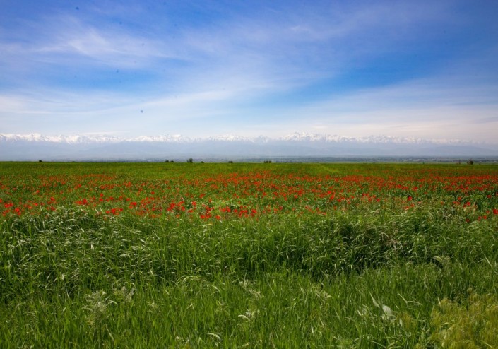 По пути мы рассматриваем интересности. Мавзолей Отеген батыра. Сюда в день свадьбы едут молодожены, правда, старики просят тех, кто выпил, не заходить внутрь. Памятник у дороги. В 1999 году машина из свадебного кортежа врезалась в КамАЗ, говорят, что водитель большегруза сошел с ума после этого. Маковые поля. Дело было аккурат после майских праздников, поля по бокам алели до горизонта на зависть инстаграмщиков.