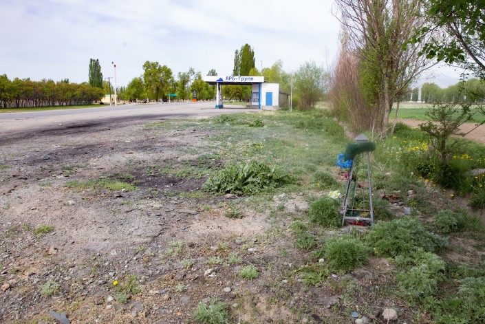 Лишь в прошлом июне населенный пункт прогремел в новостях - мощнейший взрыв на газозаправочной станции унес жизни мужчины и его маленького сына. У дороги на месте взрыва - импровизированный памятник с детской машинкой, а пыль под ногами имеет черный оттенок. Удивляет, что сажа не вымылась с дождями и снегом за 11 месяцев со дня трагедии.