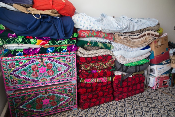 Нам проводят экскурсию по дому. Почти в каждой комнате есть традиционный дунганский топчан - нар. Члены семьи за ним и обедают, сидя за низким столиком. И спят тоже здесь, постелив на дощатую конструкцию матрасы, одеяла и корпешки (по-дунгански они называются "вус").