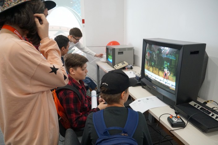 "Игра Contra мне нравится, я хочу себе купить и сыграть в старые 8-битные игры", - отмечает его 13-летний друг.