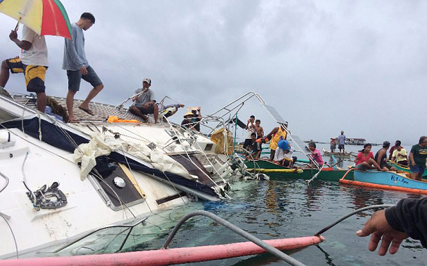 Тело моряка нашли на борту этой полузатопленной 12-метровой яхты. © Barobo Police Station