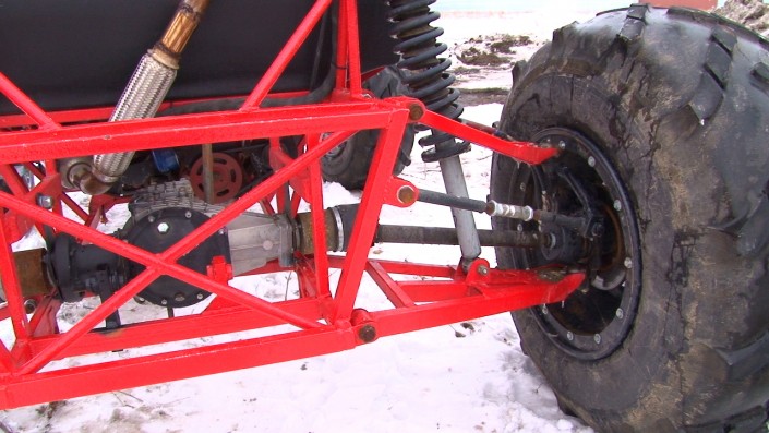 На создание вездехода у разработчиков ушло около девяти месяцев. "Изначально проектом занимались четыре человека. Сомнения, конечно, были, но когда видели, что получается, вера в это дело приходила. Раму собирали в подвале, там же ее варили. Основные агрегаты набрасывались на улице под навесом", - рассказал автолюбитель.
