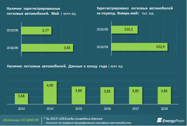 С начала года к лету 2019 года в стране зарегистрировали 310,2 тысячи легковых автомобилей - на 6,8 процента меньше по сравнению с показателями прошлого года в период с января по май (332,9 тысячи единиц). По состоянию на начало июня количество зарегистрированных легковых автомобилей составило 3,77 миллиона единиц при снижении на 1,4 процента за год.