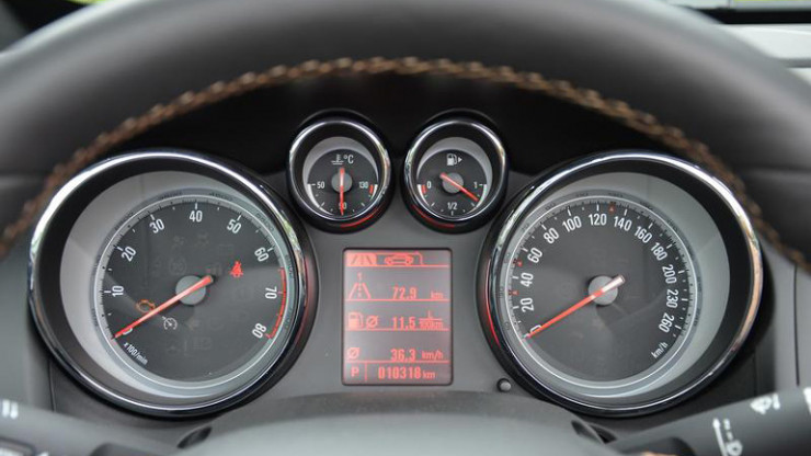 Часто автомобилисты не замечают указатель расположения топливного бака. Он позволяет определить, на какой стороне транспортного средства расположен лючок бензобака. Об этом сообщает треугольный символ на комбинации приборов.