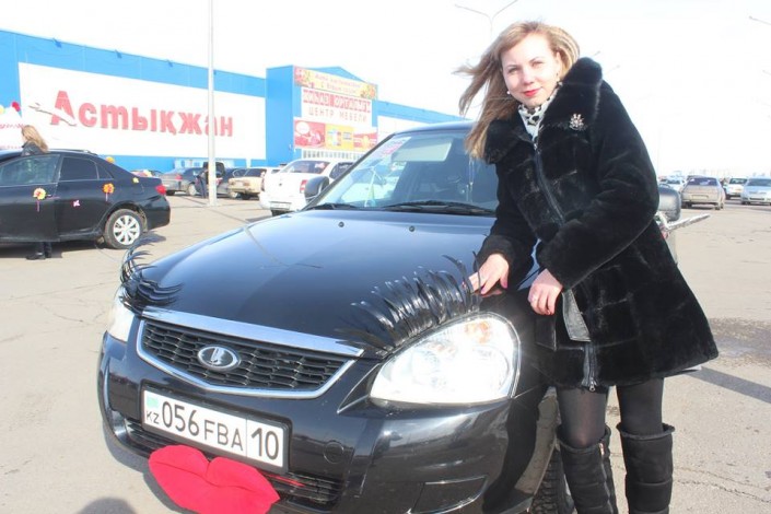 Адине Калиевой украсить ее Nissan помогла мама. Вместе с дочерью они сшили из бархата цифру 8 и орнаменты.