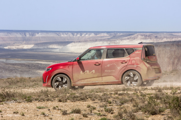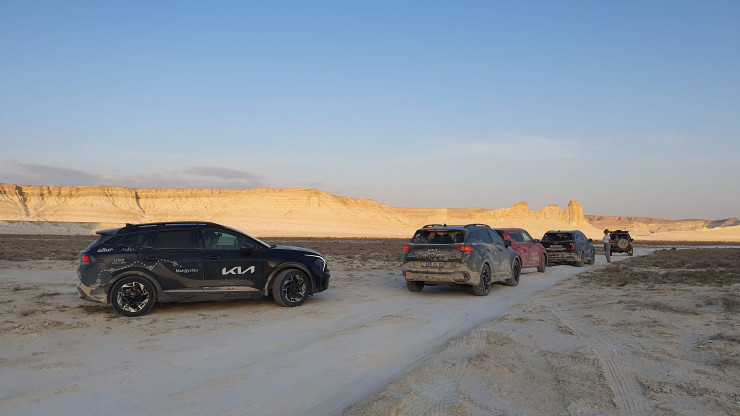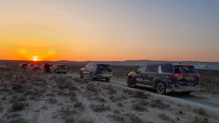 Маршрут пробега со стартом и финишем в Актау включал различные дорожные покрытия – от хорошего до разбитого асфальта и грунтовок, чтобы участники могли полноценно испытать автомобили Kia, прочувствовав характер каждой модели. Колонна из семи автомобилей включала обновленный компакт-кроссовер Soul, кроссоверы Sportage и Sorento, а также кроссвэн Carnival, в очередной раз доказав, что для автотуризма в Казахстане совсем не обязательно иметь внедорожник. Сюрпризом для участников стало появление на отрезке пробега нового электрического кроссовера Kia EV6.