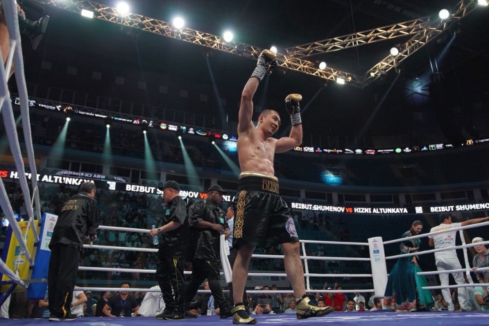 Только что в Астане на "Барыс Арене" завершился главный бой вечера бокса, в котором встречались казахстанец Бейбут Шуменов и Хизни Алтункая из Турции, передает корреспондент Vesti.kz. На кону 12-раундового поединка стоял титул чемпиона мира WBA в первом тяжелом весе.