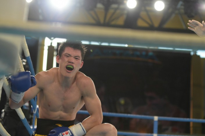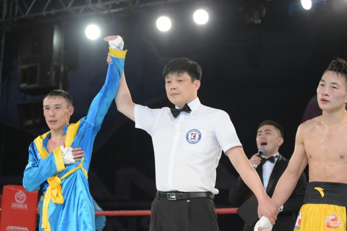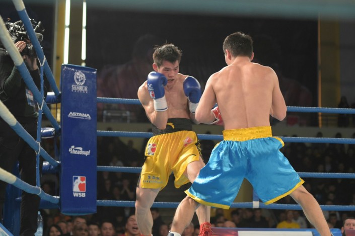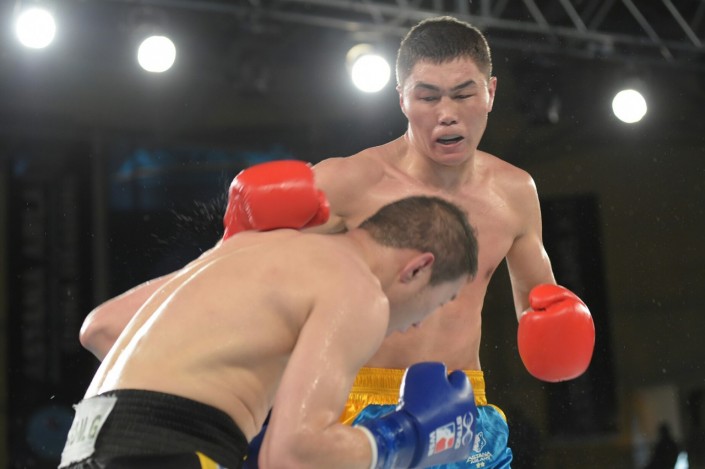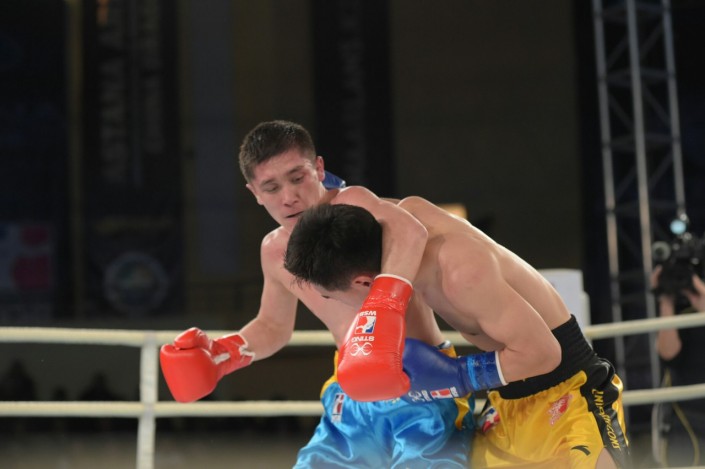 В четвертом бое матчевой встречи на ринг вышли Сапарбай Айдаров и Минганг Жао в весе до 75 килограммов. Казахстанец был сильнее - 3:0.