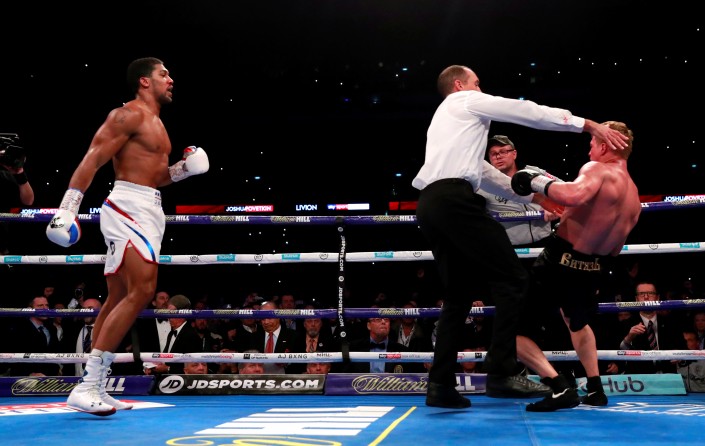 And still! Anthony Joshua finishes Alexander Povetkin in round 7 to retain the heavyweight championship! #JoshuaPovetkin pic.twitter.com/lFbfjqIeZ6
