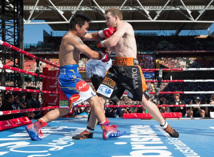 В шестом раунде Хорн правым ударом серьезно потряс Мэнни, и все же Пакьяо устоял на ногах. В середине боя филиппинец уже не имел явного преимущества над соперником, поскольку хозяин ринга умело контратаковал и даже атаковал. Плюс ему в этом помогали габариты.