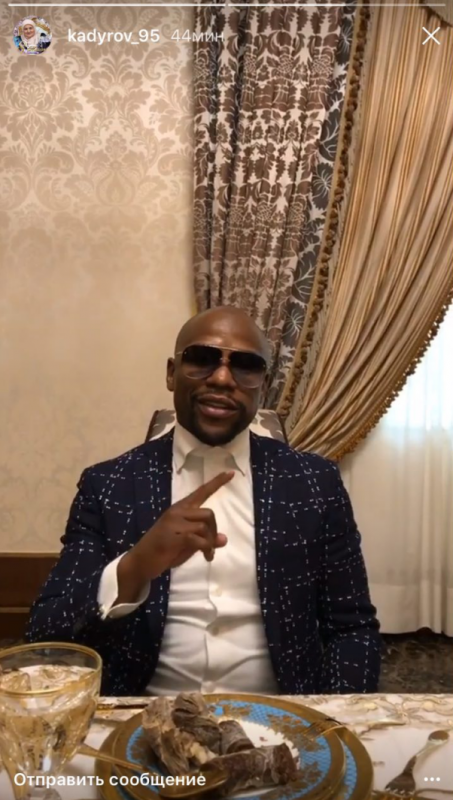 По данным издания, для боксера провели экскурсию в бойцовском клубе "Ахмат". Перед этим для Мейвезера накрыли шикарный стол, за которым он пообедал вместе с высшим руководством республики.