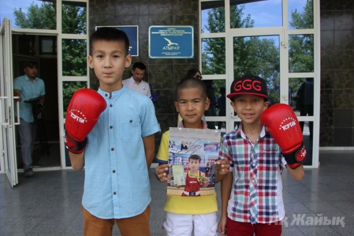 Чемпион мира по версиям WBA (Super), IBO, IBF, WBC в среднем весе казахстанский боксер Геннадий Головкин встретился с юными спортсменами в Атырау, передает корреспондент Tengrinews.kz.