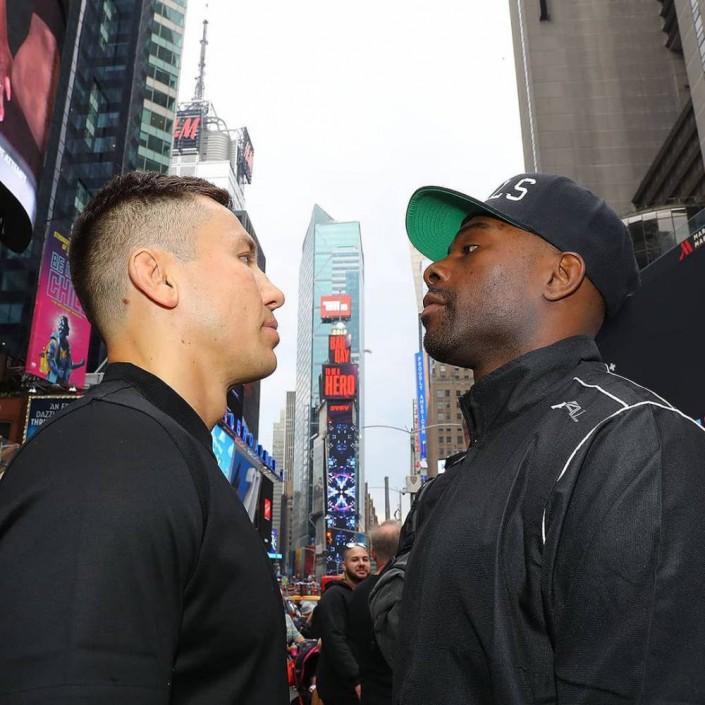 Казахстанец Геннадий Головкин и канадец Стив Роллс провели дуэль взглядов на площади Times Square в Нью-Йорке, сообщает Tengrinews.kz со ссылкой на Vesti.kz.
