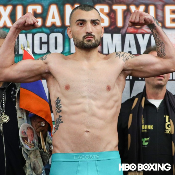 Результат Мартиросяна - 159,6 фунта, а Головкина - 160. Разница в весе составила всего 181 грамм - 72,574 и 72,393 килограмма соответственно. Лимит среднего веса составляет как раз 160 фунтов.
